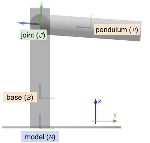 • Joint frame: each joint has a frame named //joint/@name attached to the child link at the joint's origin defined by //joint/pose. As a direct consequence, world is no longer permitted to be specified as a child link of a joint, since that would break encapsulation of the model.